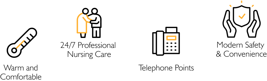 Every bedroom at Ferndown Nursing Home is equipped with an electric nursing bed, a comfortable chair, bedside lighting, and ample storage, including a secure drawer for valuables. Each room also features wireless nurse call points for added safety, a remote-controlled digital Freeview television, and a hands-free telephone to make communication easy. Our residential care unit offers an additional nine en-suite rooms, all featuring modern wet rooms for added comfort and convenience.